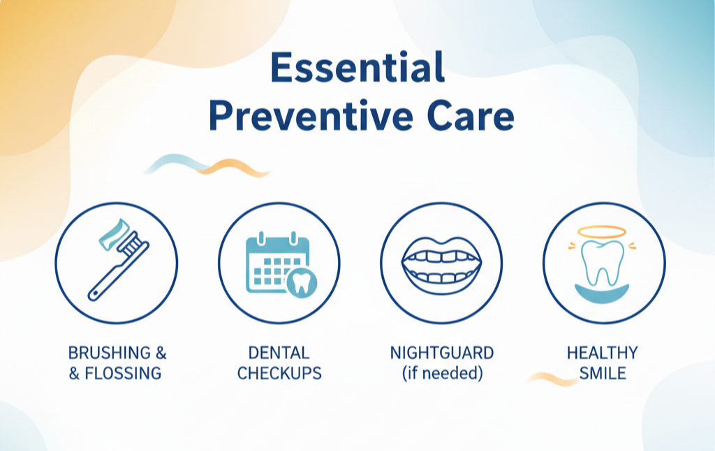 Prevention is rarely dramatic. It’s built from small, consistent habits. Regular cleanings catch issues early. Nightguards protect teeth if you clench or grind. Addressing sensitivity early can stop decay before it reaches the nerve.